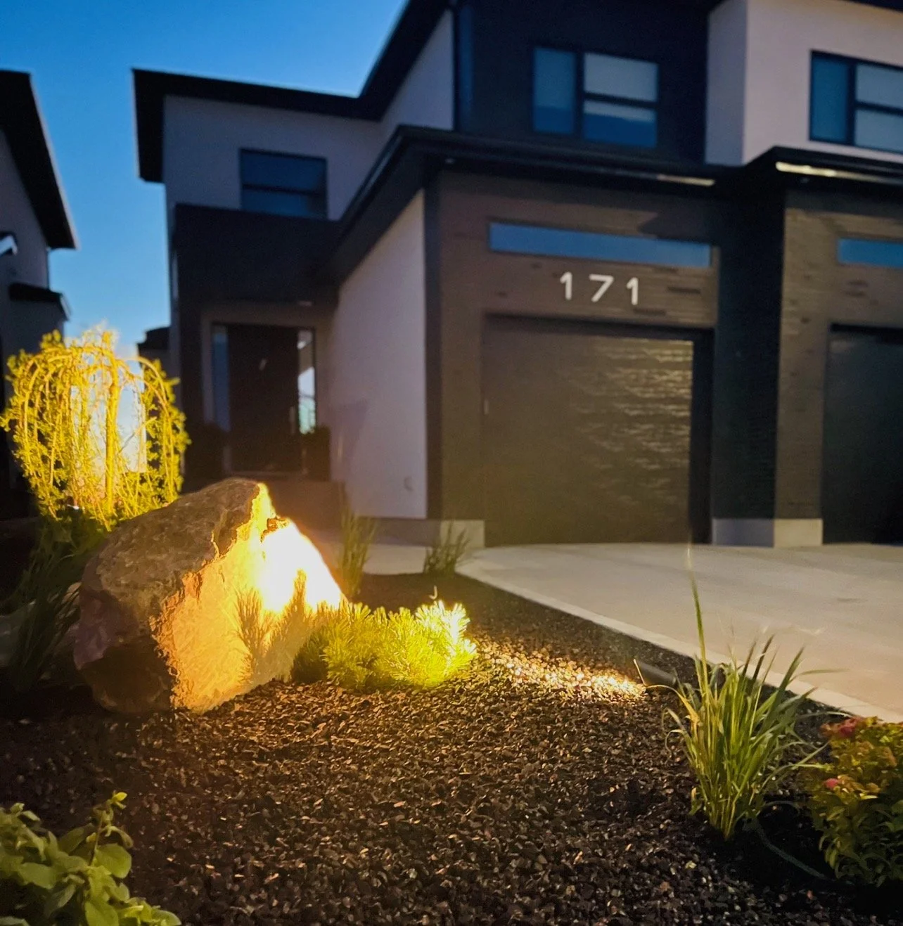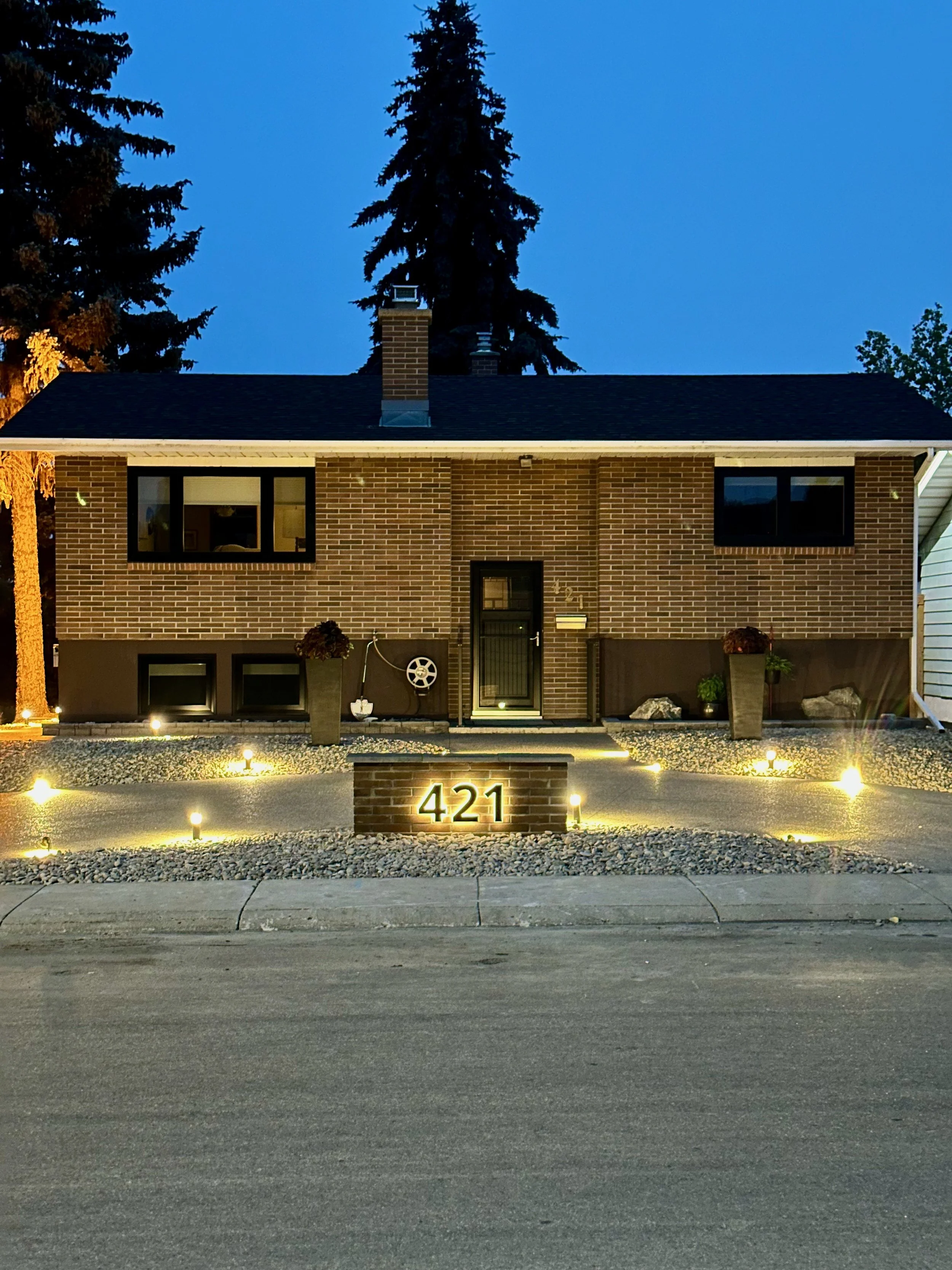Spruce up some of your yards lovely features with some custom landscape lighting! We do back-lit number signs, pathway lighting, and feature lighting.